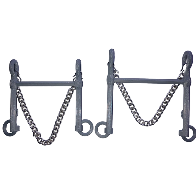 Kankikuolain ketjulla keppihevoselle. Ketjun saa auki toiselta puolelta, kiinnityksenä pieni S-koukku.